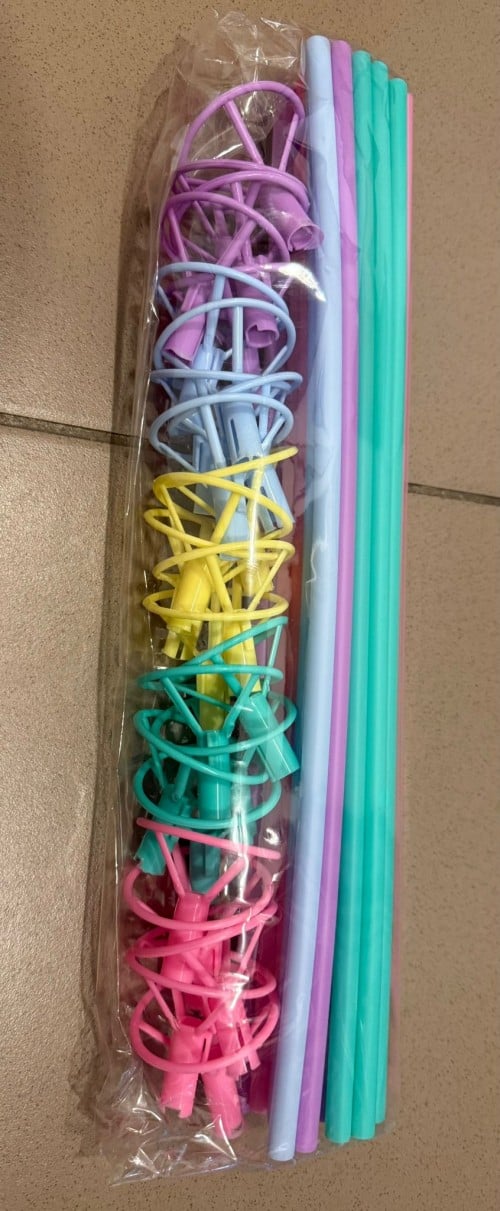 Setul contine 25 bete de plastic tubulare cu rozete,pentru baloane de folie.