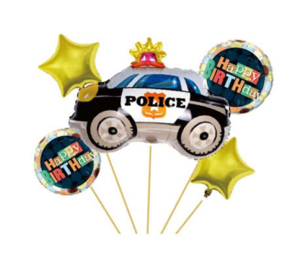 Transformă aniversarea copilului într-o adevărată misiune de distracție cu buchetul de baloane din folie Police Happy Birthday, ideal pentru petreceri tematice cu polițiști, mașini și eroi în uniformă. Acest set este alegerea perfectă pentru decorarea rapidă și de impact a unei petreceri de zi de naștere.