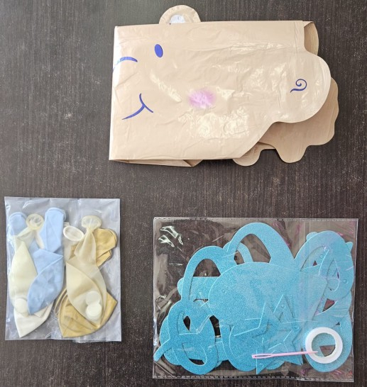 - 1 balon folie în formă de bebeluș, cu design simpatic, ce se umfla cu aer, cu ajutorul unui pai sau a unei pompe manuale.