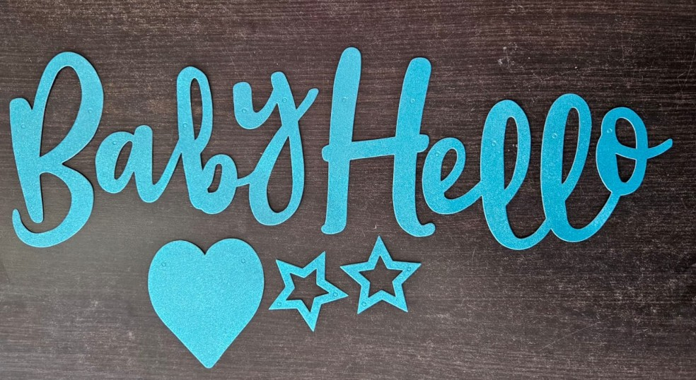 - Elemente decorative armonizate pentru un decor complet, si anume un banner cu mesajul Hello Baby
