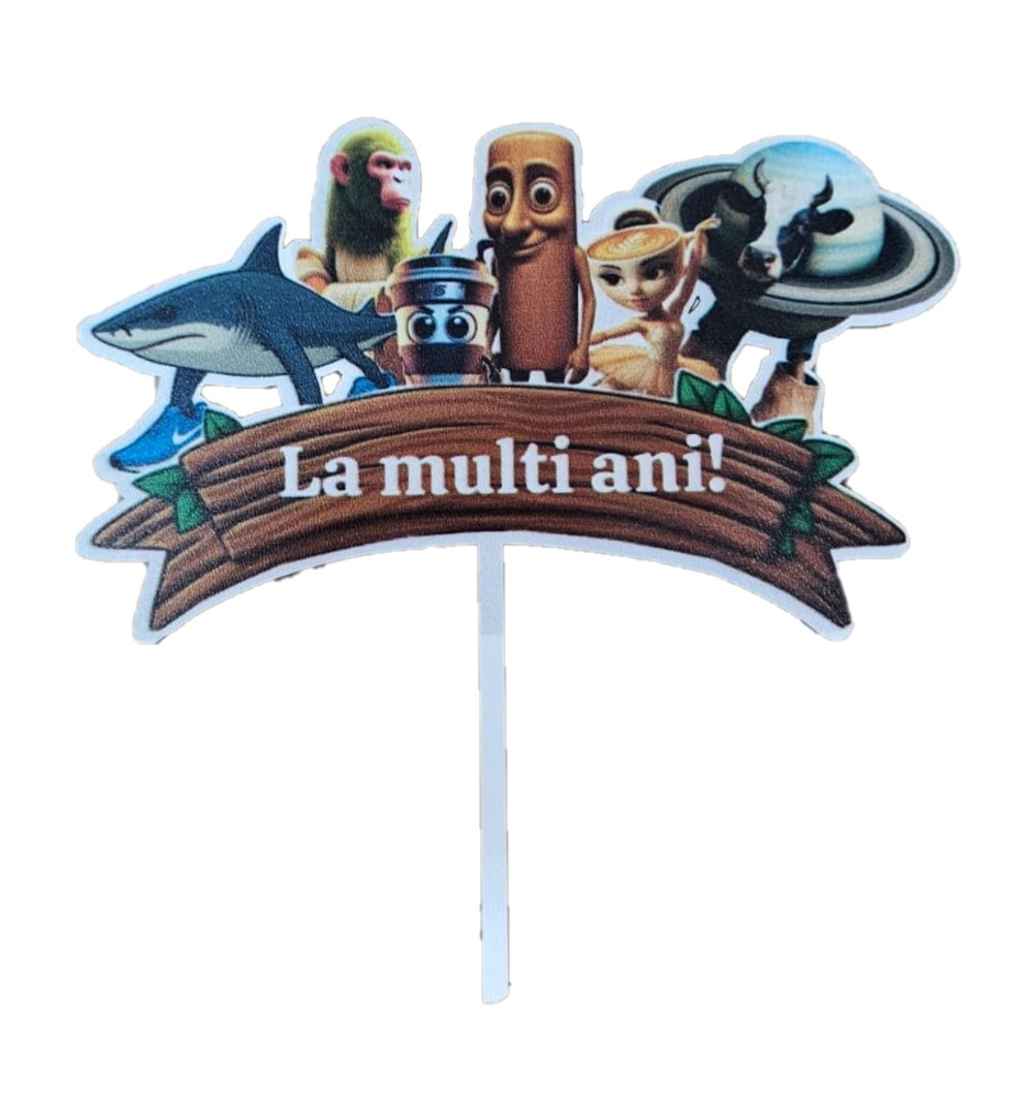 Adaugă un plus de distracție și originalitate tortului aniversar cu acest topper inspirat din universul Brain Rot! Cu un design colorat și amuzant, topperul este perfect pentru fanii acestor personaje simpatice și pentru petrecerile pline de energie.