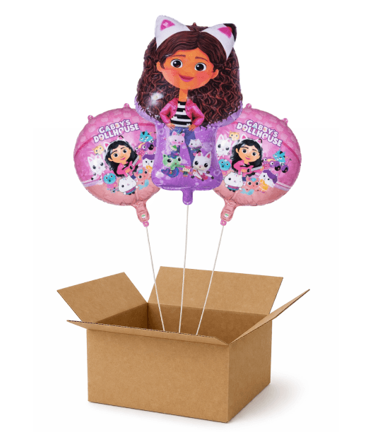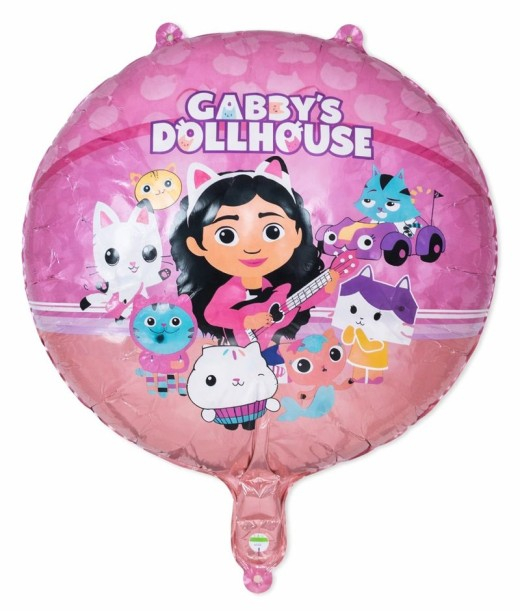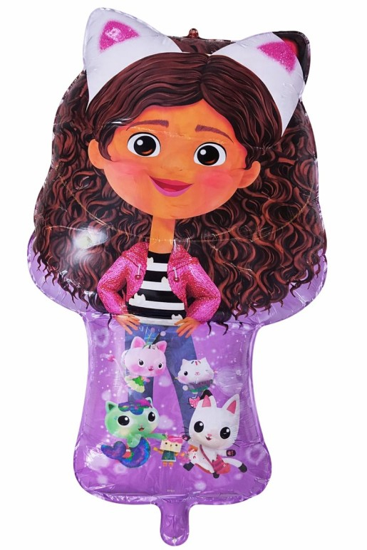 - Doua rotunde cu Gabby si Casuta Jucariilor cu 2 fete, unul este in forma de corp Gabby, cu dimensiunea de 45 cm si 60 cm, umflate cu heliu și legate cu rafie.