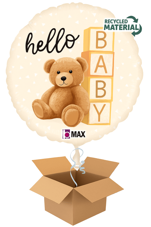 🎉 Întâmpină un nou început cu acest balon adorabil, perfect pentru decorurile de botez, baby shower sau surprize pentru proaspeți părinți! Designul cu ursuleț pufos și cuburi colorate "BABY" transmite căldură, tandrețe și bucurie într-un mod jucăuș și elegant.
