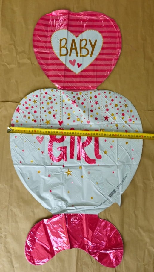 Acest balon decorativ din folie, cu design delicat „Baby Girl”, este perfect pentru petrecerile de baby shower, întâmpinarea bebelușei acasă sau sesiuni foto tematice. Are o formă specială cu două inimi suprapuse și o bază de susținere care îi permite să stea în picioare după umflare.